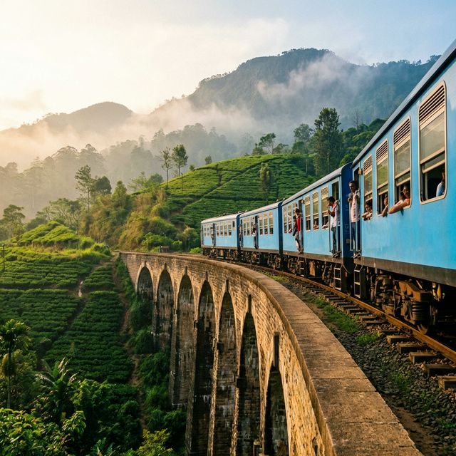 Winding through emerald tea plantations, crossing old stone bridges, and passing through misty mountain passes, this 7-hour journey is the highlight of any Sri Lanka trip.