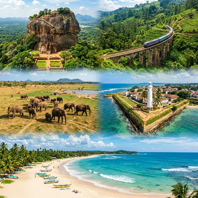 Days 1–2: Colombo (arrival + city exploration) Days 3–4: Sigiriya & the Cultural Triangle (ancient ruins, rock fortress) Days 5–6: Kandy (cultural capital, Sacred Tooth Relic, botanical gardens) Days 7–8: Ella via scenic train (mountain village, Nine Arch Bridge, hiking) Days 9–10: Udawalawe & Yala (elephant and leopard safaris) Days 11–12: Mirissa & South Coast Beaches (whale watching, swimming) Days 13–14: Galle Fort & Colombo Departure